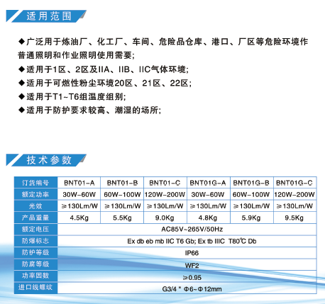 防爆LED灯 百纳品牌 适用于爆炸性混合物场所 30/60/70/100/120/200W