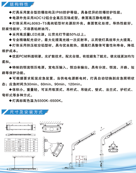 LED防爆荧光灯长条支架 吸顶仓库厂房防水照明灯 20/40/60W