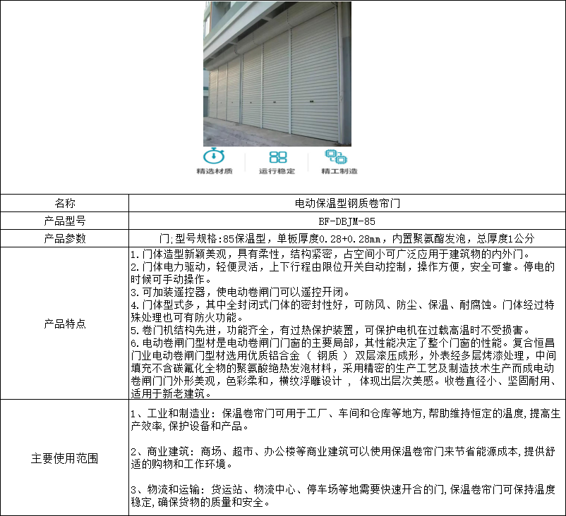 电动保温型钢质卷帘门(BF-DBJ-85)